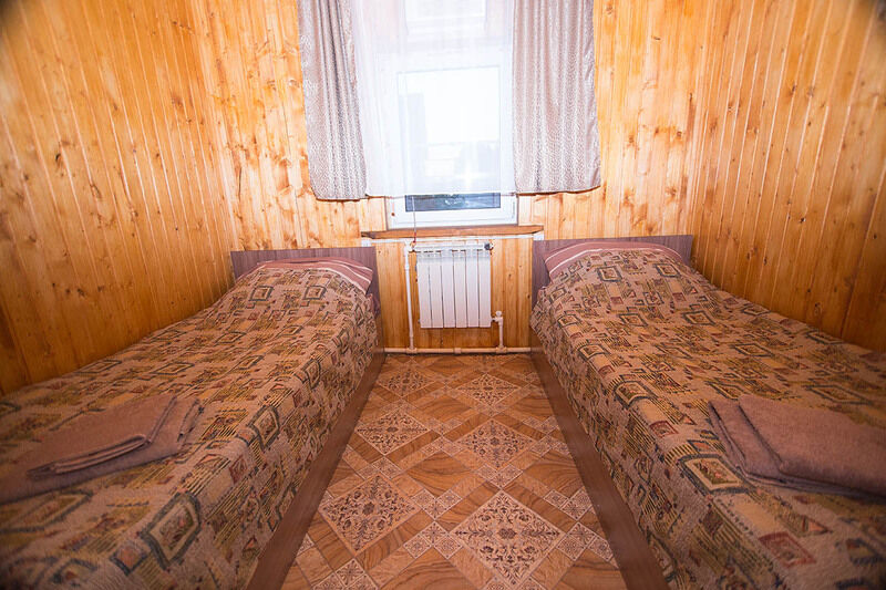 Каждая комната имеет выход на общую открытую веранду, где можно отдохнуть после рыбалки. Это самый экономный вариант проживания для тех гостей, которых не пугает отсутствие душа и туалета в доме. Душевая кабина с горячей водой, поступающая по подземному трубопроводу от газового котла, а также умывальник и туалеты расположены на территории базы, недалеко от домов "Эконом".