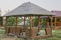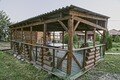 Деревянные домики-срубы серии «Комфорт» состоят из двух комнат имеющих выход на общую веранду. Каждый домик рассчитан на прием четырех гостей по два человека в комнате К домам пристроена площадка для отдыха, где гости могут отдохнуть на свежем воздухе. Все домики расположены неподалеку от берега реки, что позволяет ловить рыбу на территории базы.