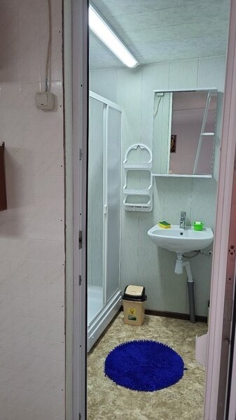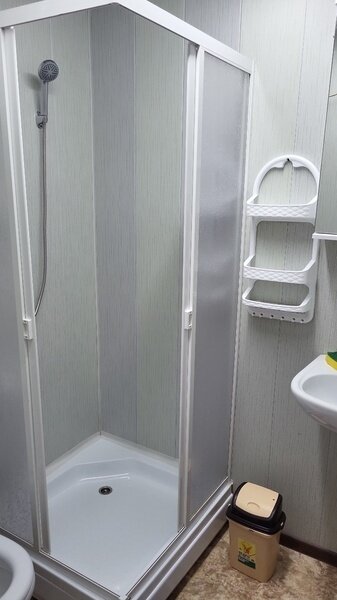 Гостиная и душевая зона с санузлом общего пользования.