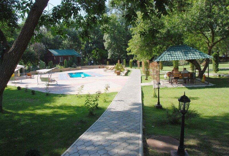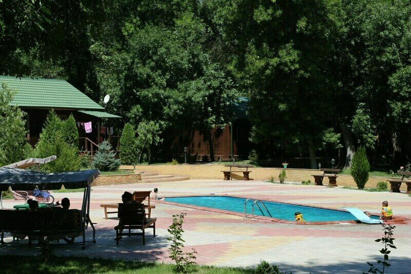 Семейный отдыхДостоинстваРешили отметить тут день рождения. Мне очень понравилось. Администратор – вежливая женщина, которая готова помочь решить любые проблемы. По периметру домиков аккуратная плитка, дорожки. Бассейн красивый, с прозрачной водой.