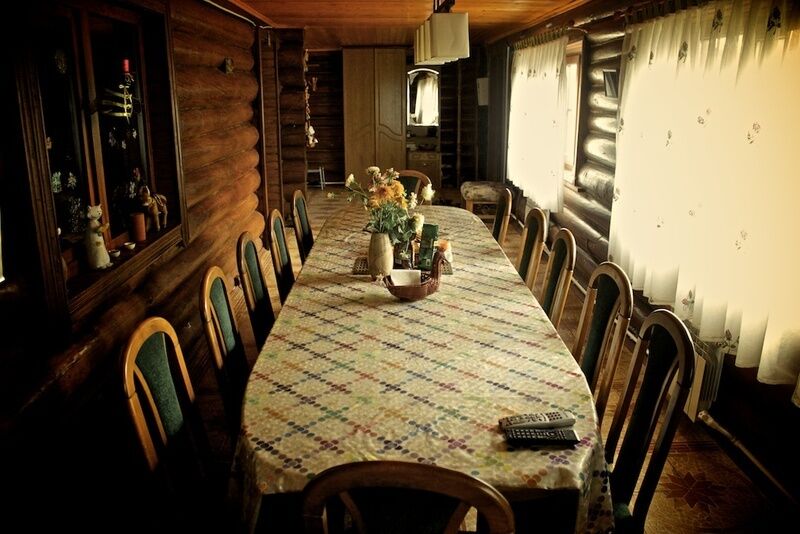 На первом этаже сруба расположены просторная столовая на 12 персон, оборудованная спутниковым телевидением, сплит-системой, системой обогрева пола.