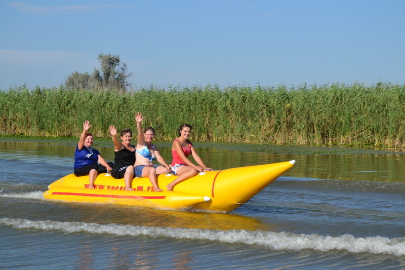 Свадьба на базе отдыха за счет близости к природе особенно приятна в летний сезон - можно совершить свадебный круиз в раскатную часть дельты на скоростном катере.