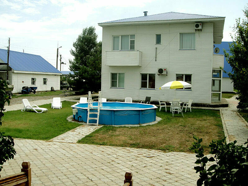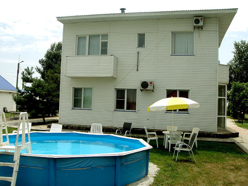 Тип бассейна: открытый бассейн, каркасный бассейнРядом с бассейном: шезлонги, зонтики -
