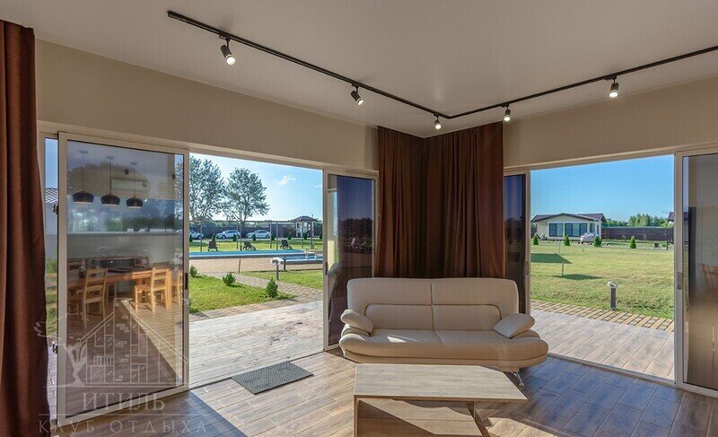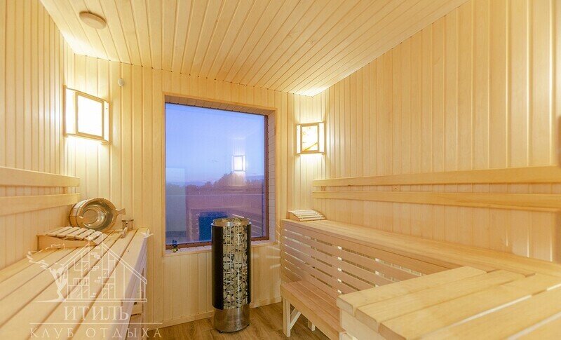 Инфраструктура: бассейн, зона отдыха, душЗдание сауны расположено рядом с берегом Волги. Там имеется большая уютная комната отдыха площадью 35 кв.м с панорамными окнами и шикарным видом на реку. Вместимость: 10–12 человек. В зале также есть небольшая кухня, чтобы вы могли самостоятельно приготовить и накрыть на стол.