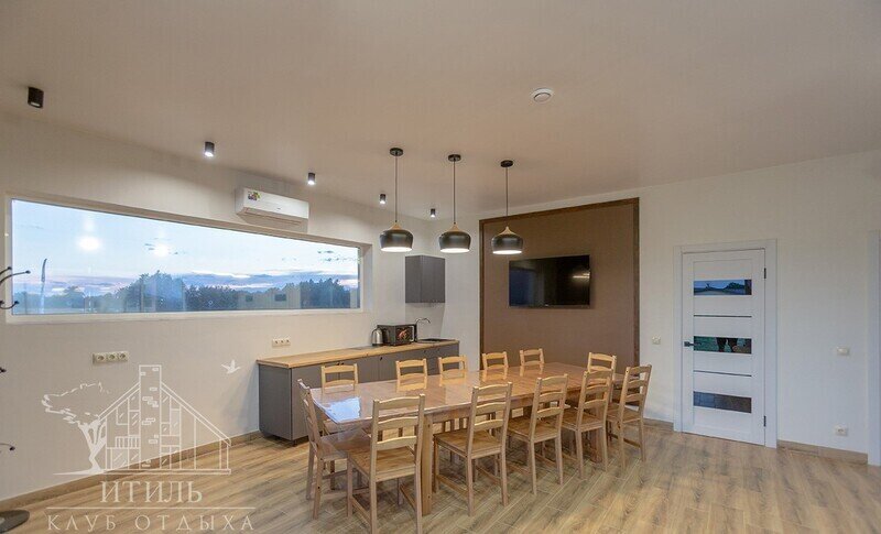 - Столовая с кухонной зоной, возможность размещения до 30 человек.