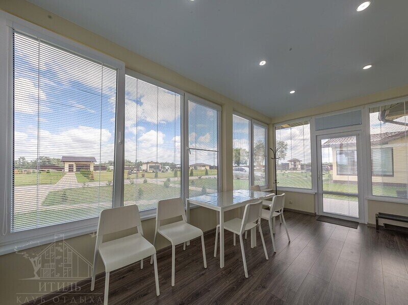 Здание сауны расположено рядом с берегом Волги. Там имеется большая уютная комната отдыха площадью 35 кв.м с панорамными окнами и шикарным видом на реку. Вместимость: 10–12 человек. В зале также есть небольшая кухня, чтобы вы могли самостоятельно приготовить и накрыть на стол.