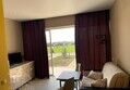2 одноместные кровати, микроволновка, чайник, телевизор, санузел с душем и раковиной, панорамные окна с выходом на небольшую террасу.
