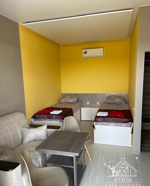 - В номерах дополнительное спальное место: для детей до 7 лет — бесплатно, с 7 до 12 лет — 1000 ₽. Дополнительно место не предоставляется для детей старше 12 лет.