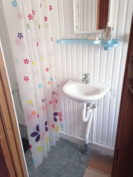 Деревянный домик на берегу, рассчитанный на 4 человека (есть всё необходимое для удобства клиента): кухня, баня, санузел, душевая).