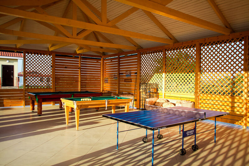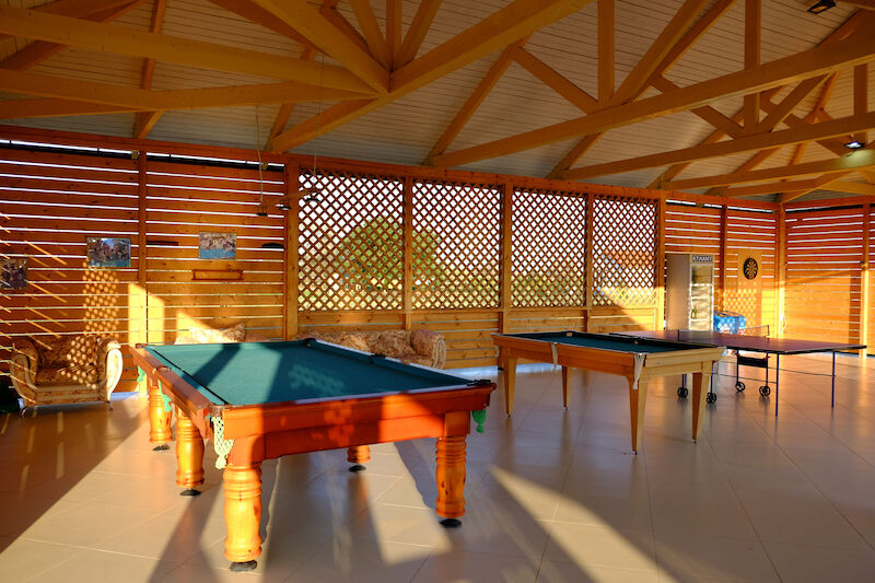 В дневное пребывание входит: беседка с мангалом, бассейн, игровая зона (теннис настольный, бильярд, дартс), холодильник, прогулки по территории базы, пользование понтонами.