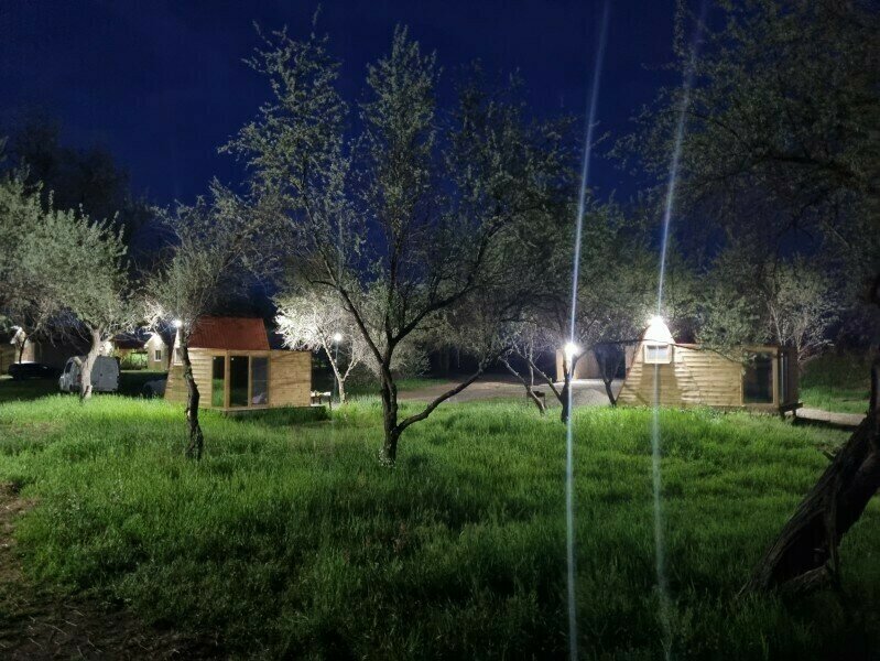 Миниатюрные кемп-домики представляют собой мини-район на берегу реки с электричеством и общим комплексом удобств с горячей водой.