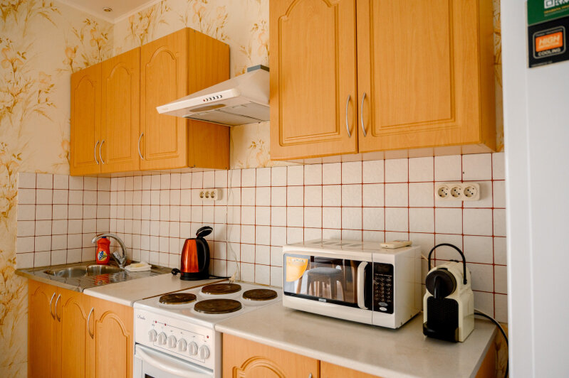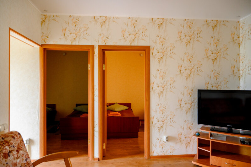 1 спальная комната с двумя кроватями, уютная кухня-гостиная с диваном (двуспальный), телевизором, оборудованной мини кухней.