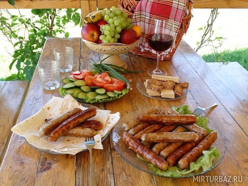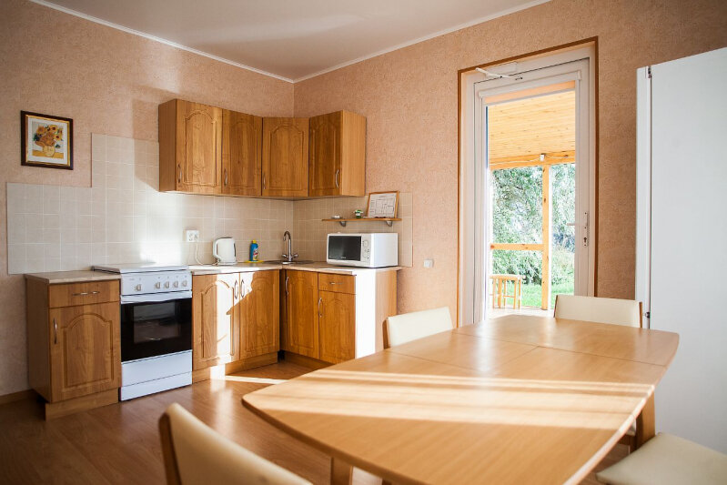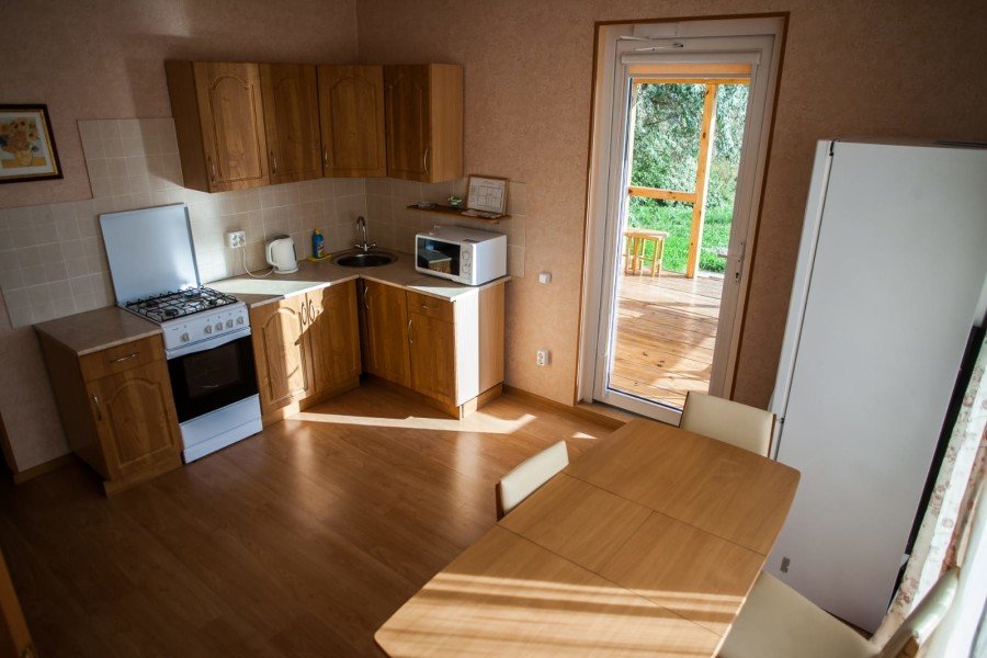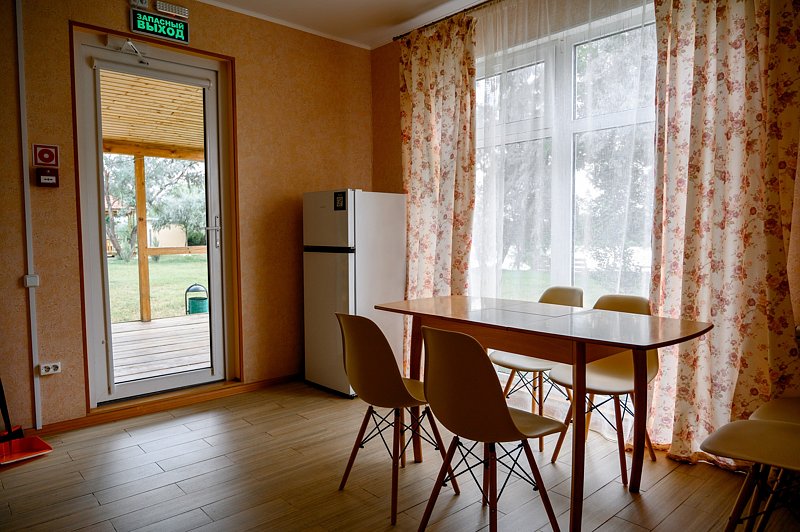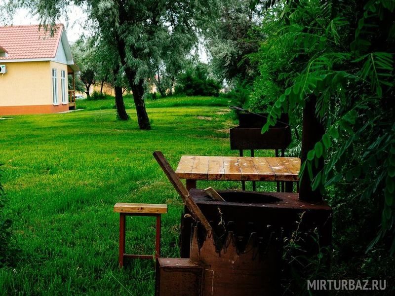 Уютные домики оборудованы всем необходимым: мебелью, телевизором, кондиционером, просторным санузлом с душем и полностью оснащенной кухней (плита, холодильник, микроволновка, чайник). Для любителей шашлыков — мангалы на территории.