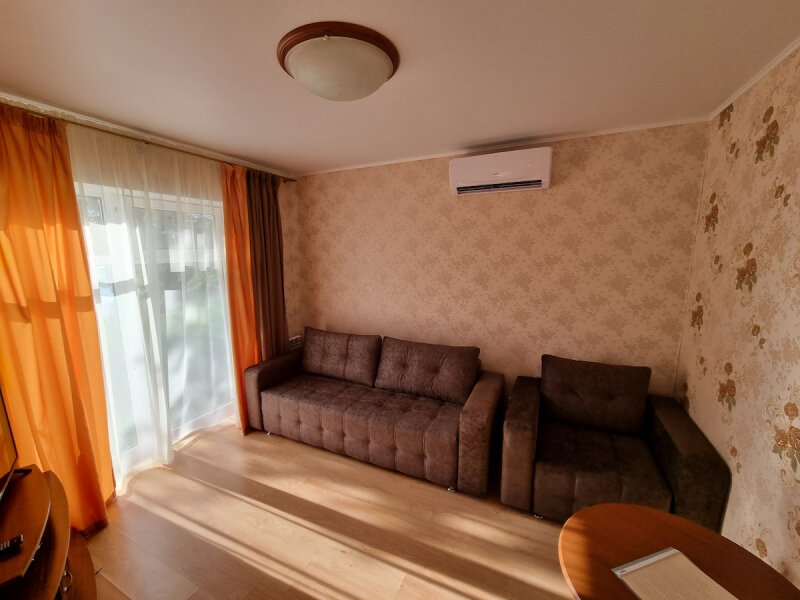 1 спальная комната с 2 кроватями (0,9м), уютная гостиная студия: диван (двуспальный для размещения 3го и 4го гостя!), мини кухня,с/у