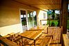 Собственная просторная терраса оснащена большим столом и 2-я скамьями.