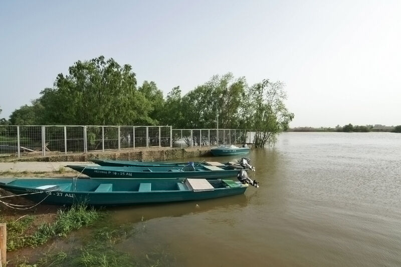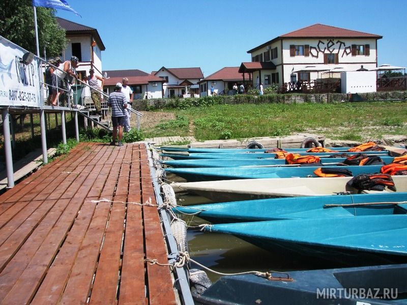 Далее, двигаемся все время по главной дороге до 9-го светофора и уходим налево по указателю Камызяк. Проезжаем 29 км и на въезде в Камызяк, перед большим мостом, уходим налево по указателю Тузуклей. Слева АЗС. Проезжаем п. Азовский (здесь очень часто замеряют скорость и много коров), проезжаем большой мост через реку Черная (ОСТОРОЖНО!!! На въезде на мост через р. Черная - трамплин, необходимо снизить скорость), и поворачиваем на право в сторону села Раздор. Проезжаем село Раздор и на 7 км, уходим направо по указателю Р.Хутор. Далее все время по главной дороге. После небольшого моста через ерик Гуськи доезжаем до указателя база отдыха "Ревин Хутор", проезжаем еще примерно 400 метров до указателя База "Осетр" и справа большие деревянные ворота с козырьком - въезд на базу. Вы на месте, добро пожаловать!