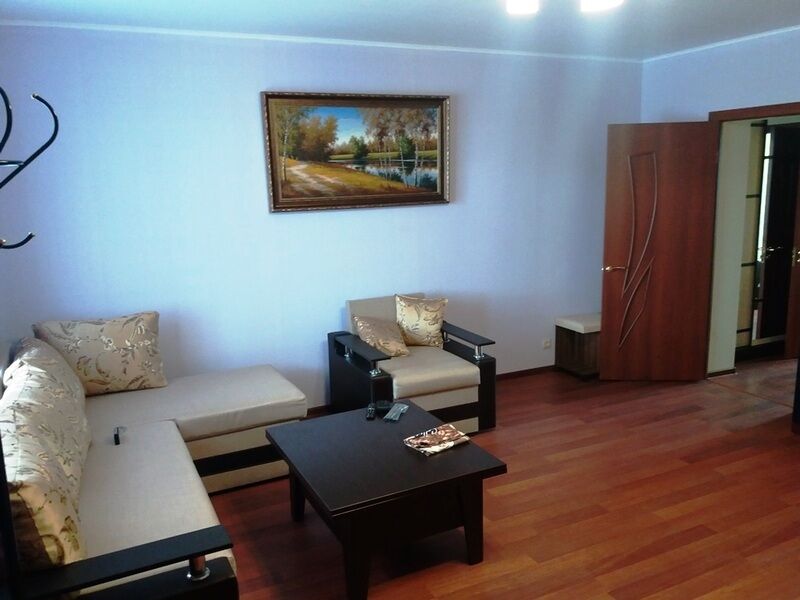 - в гостиной есть диван, который можно разложить в удобную кровать, ТВ, акустическая система, журнальный столик, раскладывающийся в большой стол, за которым сможет уместиться 5-6 человек;