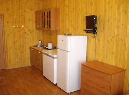 Размещение в комфортных номерах класса «люкс» для 2-х или 3-х гостей площадью 35 м.кв., с отдельной крытой верандой площадью 10 м.кв. рассчитаны для проживания круглый год. Каждый номер оборудован: отдельным с/у, отдельным водонагревателем, душевой кабиной, сплит системой, холодильником, персональным сейфом, кухонным гарнитуром, столом, стульями, кроватями с постельным бельем, одеялами и покрывалами, оплаченным триколором на 100 ТВ каналов, телевизором, электроплиткой, электрочайником, телефоном местной связи. Есть автономная электростанция.