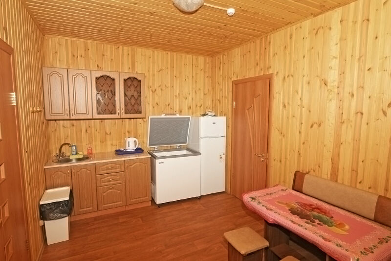 В каждом гостевом доме два номера двухместного размещения и два трехместного. Комфортабельные номера на 3-х человек. Каждый номер имеет площадь 35 м.кв., отдельную крытую веранду плошадью 10 м.кв. В каждом номере имеется: отдельный санузел с горячей и холодной водой, отдельный водонагреватель, душевая кабина, унитаз, раковина с подсветкой и шкафчиками, сплит система, холодильник, персональный морозильный ларь для заморозки пойманной рыбы, персональный сейф для хранения личных ценностей, кухня, стол, стулья, набор посуды на четыре персоны, разделочная доска, ножи, шампуры, кастрюли, сковородки, кровати с покрывалами, одеялами и постельным бельем, ТВ "Триколор" на 100 каналов, электрочайник, телефон местной связи. Автономная электростанция.