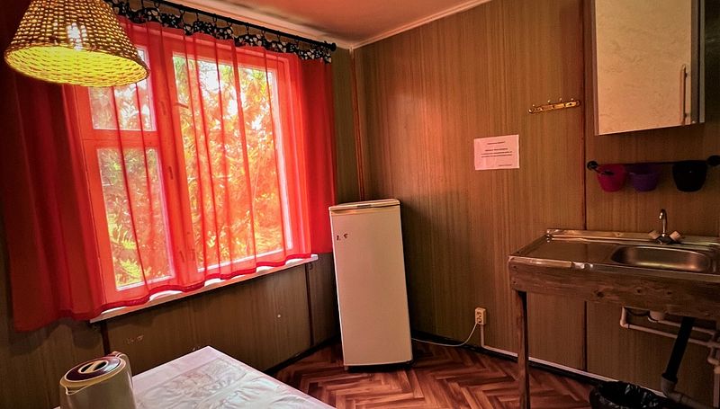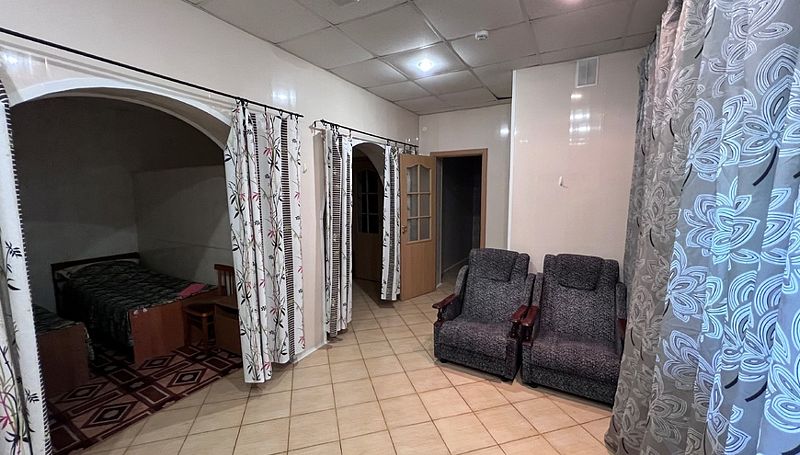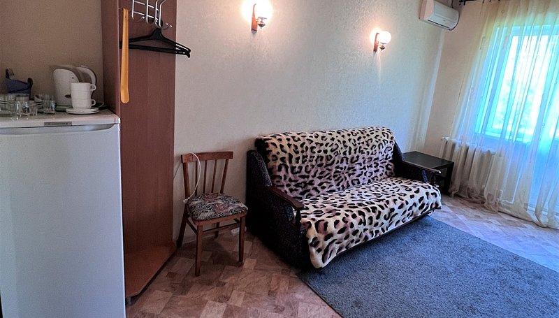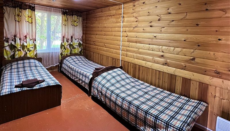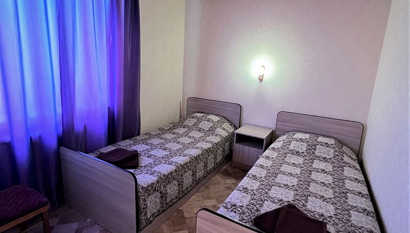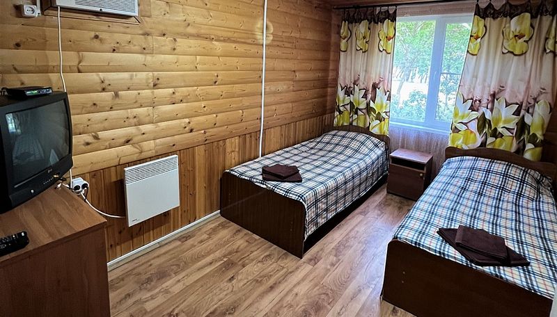 2-й этаж – двухместные номера (гостиная разделена аркой от спальной комнаты (есть 2 номера с двуспальной кроватью, остальные номера с раздельными кроватями), ванная комната, телевизор, холодильник, сплит-система). Теплые номера.