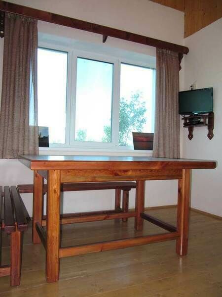 Номерной фонд представлен: номер стандарт, номер люкс, дом коттедж, дом сруб. Размещение до 10 человек. Интерьер исполнен в современном стиле, номера оснащены всем необходимым для комфортного отдыха.
