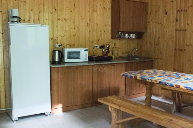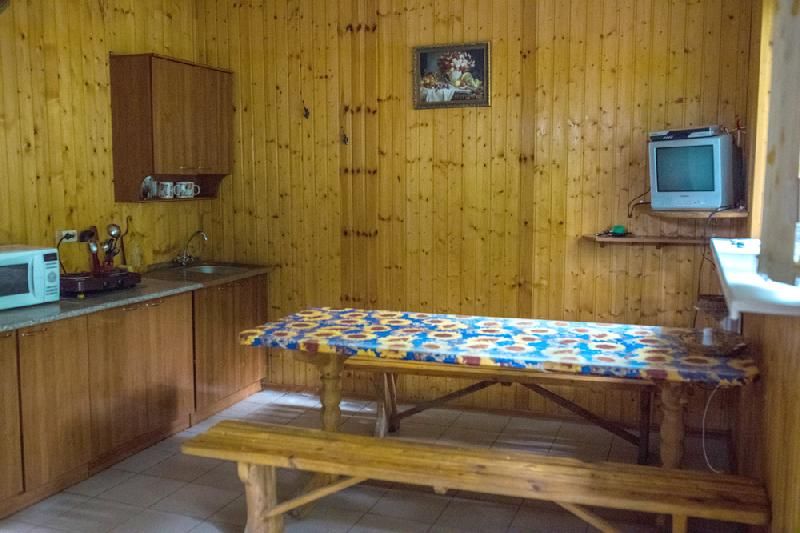 В домиках: укомплектованная кухня, горячая и холодная вода (городской водопровод), спутниковое телевидение, холодильник, сплит и т.д. В холодное время домики отапливаются. У каждого домика оборудована открытая веранда с персональным мангалом и коптильной камерой.