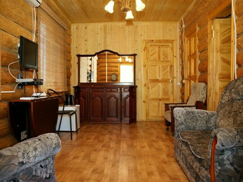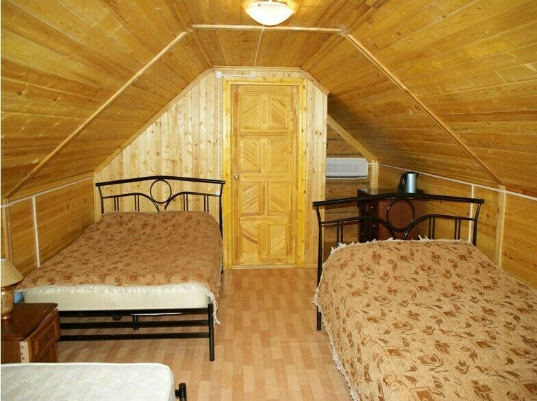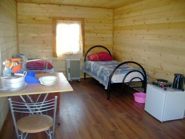 Деревянный, комфортабельный домик на 2-х человек (жилая площадь - 16 кв.м). Находится на берегу реки в роще за рестораном.