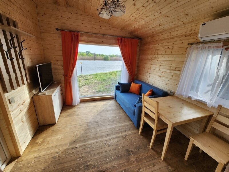 Комфортно для проживания 3-4 человек. Размещение: Две кровати по 90 см и одна двуспальная кровать 160 см. Панорамное окно, душевая, мини кухня