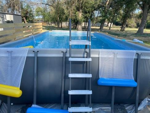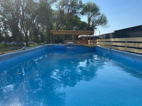 Тип бассейна: открытый бассейн, каркасный бассейнТемпература в бассейне: 30 °CРазмеры: 4 x 6 мПлощадь: 24 м²Время работы: от 9:00 до 19:00Глубина: 132 смЛетняя кухня