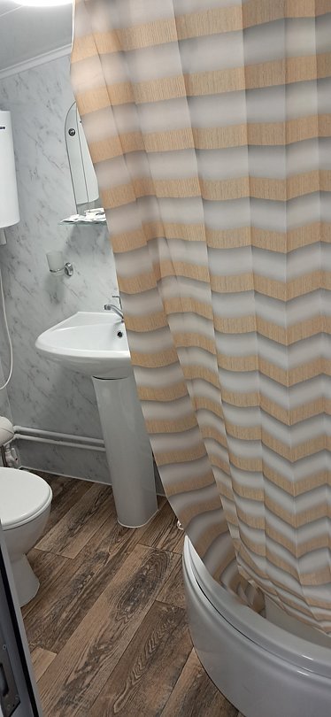 Санузел, душ, ТВ, холодильник, кондиционер, чайник. В корпусе - 4 номера. Каждый номер с отдельным входом и с общей верандой на 2 номера.