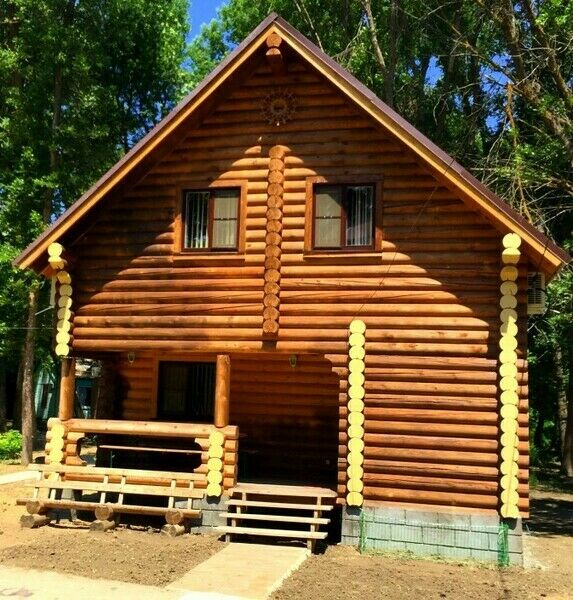 2-х этажный сруб включает в себя: 3 комнаты, гостиная, кухня, 2 туалета, душ.