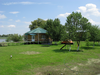 Для детей построена небольшая огражденная детская площадка с песочницей, батутом и качелями, где малышам нравится проводить время.