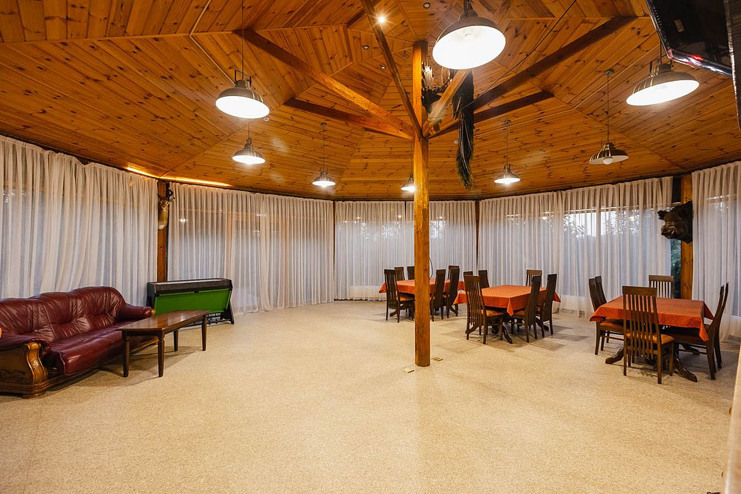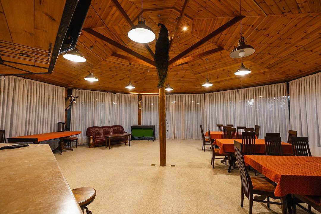 Зал ресторана отличается домашним уютом, а обед или ужин на открытой террасе ресторана позволит Вам, наслаждаясь с любовью приготовленными блюдами и напитками, созерцать водную гладь. Ресторан рассчитан на одновременный прием до 40 гостей и до 50 гостей в банкетном зале.