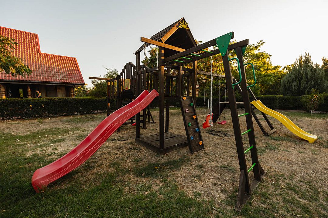 Имеет собственную мини-кухню со столом, чайник, микроволновка, набор посуды и столовых принадлежностей, холл с раздевалкой, 4 номера с односпальными кроватями. Индивидуальные ванные комнаты в каждой спальне. В номерах: спутниковое телевидение, система кондиционирования, холодильник, сейф, wi-fi. К услугам гостей уличная беседка, садовые качели.