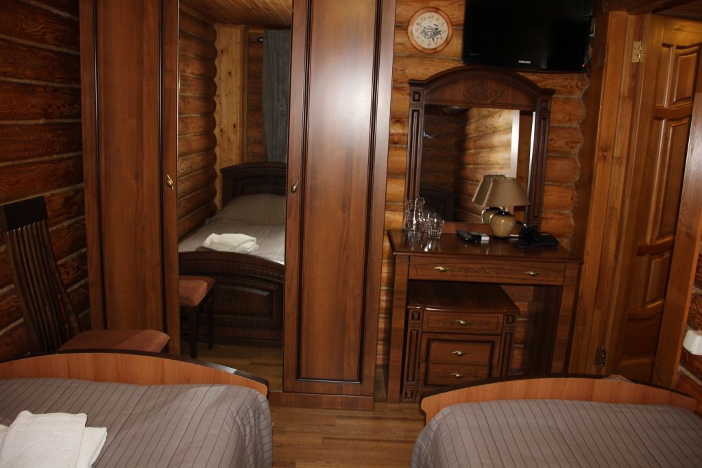 Дом - сруб - 2 этажа. Идеально подходит для компании из 3 человек. Дом состоит из двух номеров на 1 и 2 этаже с двумя отдельными входами. В каждом номере расположена ванная комната. Изысканный дом в охотничьем. В номерах: спутниковое телевидение, система кондиционирования, холодильник, сейф, wi-fi.
