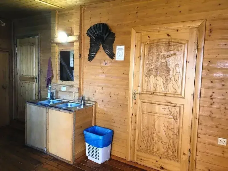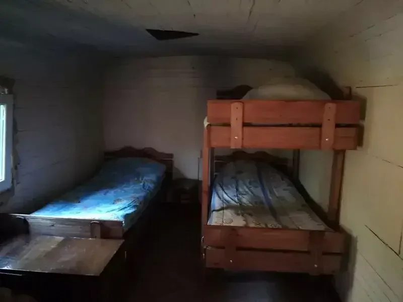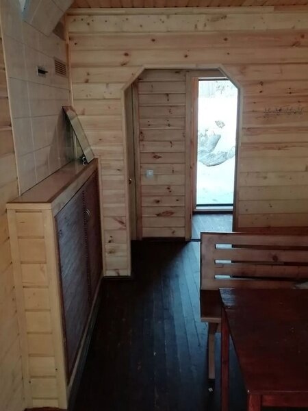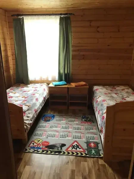 Деревянный дом, расположенный на берегу озера вмещает в себя 2 трехместных и 1 двухместный номера. В каждом из них отдельные полутороспальные кровати.