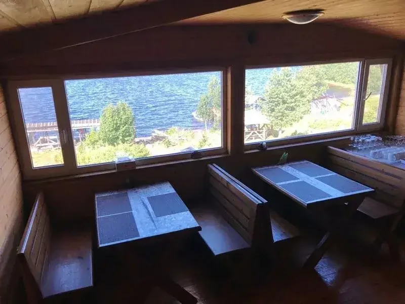 Гостевой дом на базе отдыха предлагает три просторных номера: два трехместных и один двухместный. Внутри дома есть комната отдыха с камином и полностью оборудованная кухня, столовая же предлагает панорамный вид на озеро. Также доступны спутниковое телевидение и увлекательные настольные игры.