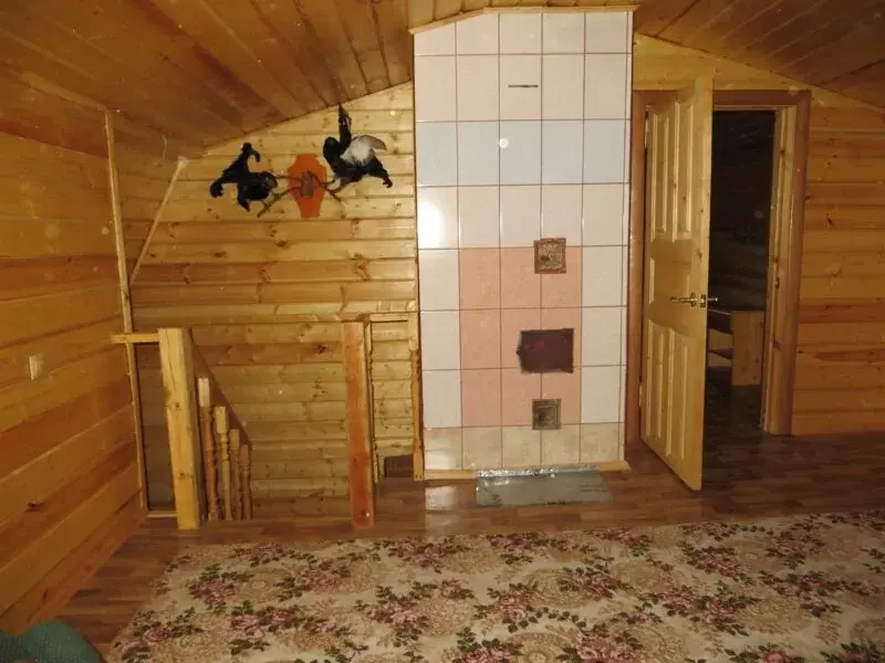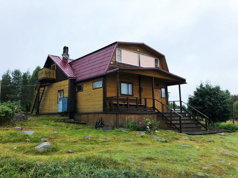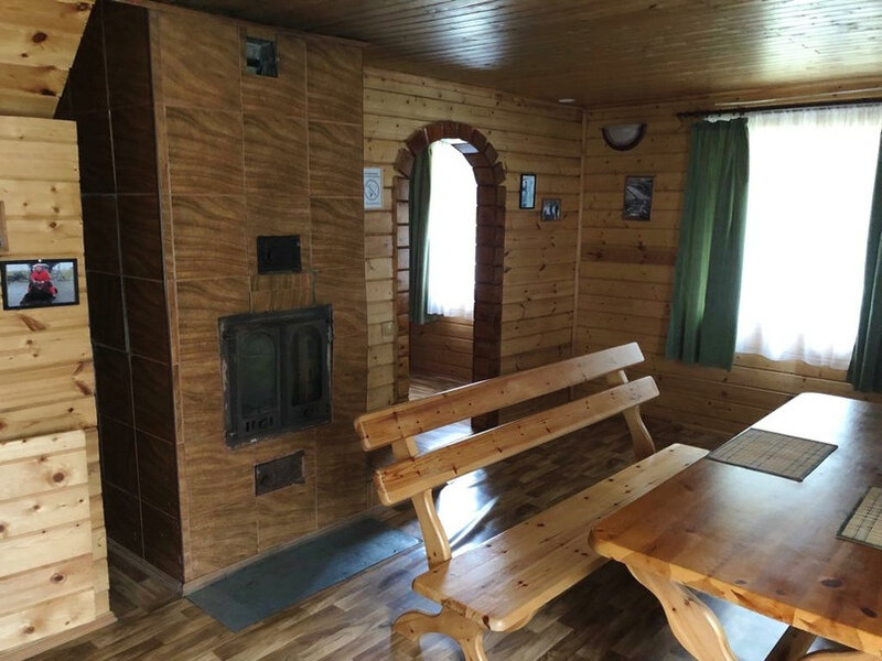 В доме два этажа. На первом этаже двухместный номер, столовая с камином и большим столом, спутниковое TV, настольные игры, имеется санузел (в летнее время).