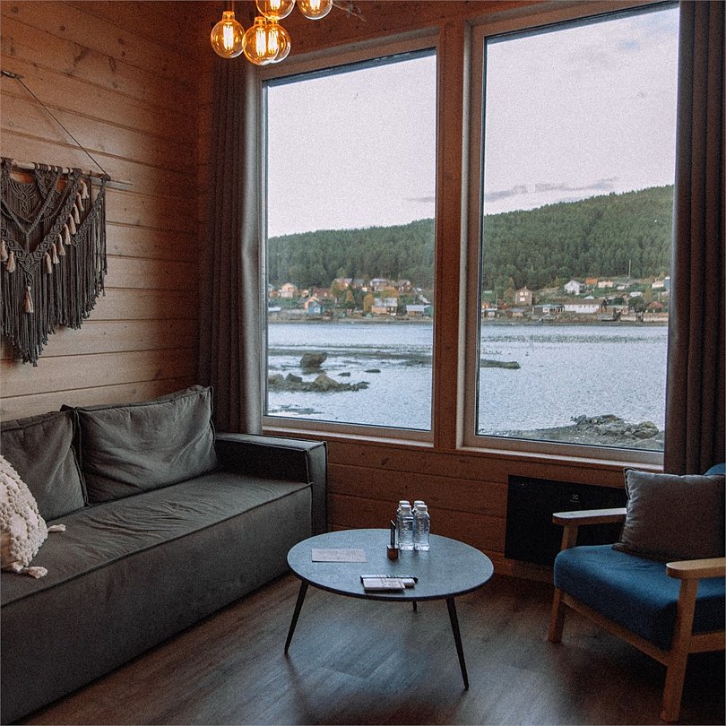Дом расположен на пирсе Кандалакшского яхт-клуба, из панорамного окна вид на устье реки Нивы и залив Белого моря. Для вашего удобства в доме есть чайная станция, мини-холодильник и базовый набор посуды. Ванная комната с душевым уголком, индивидуальные гигиенические наборы и полотенца предоставляются. Дом обогревается тёплыми полами и конвектором. Максимальная вместимость - 2 человека. Возле дома собственная веранда с креслами и столиком с видом на залив.Услуги и удобства