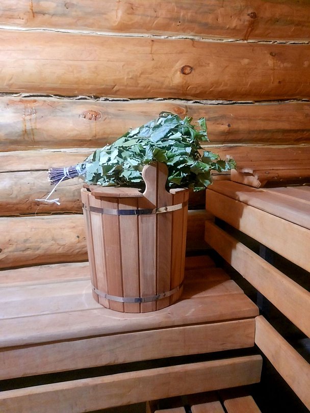В стоимость включен один березовый веник, шапочка и тапочки для каждого гостя.