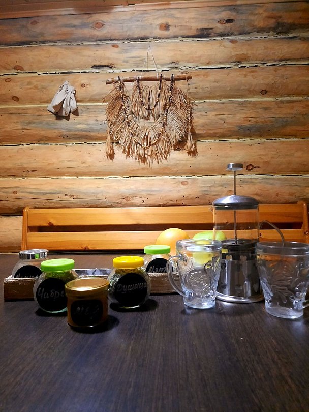 В бане предоставляется: электрический чайник, чай из местных трав, мед и сахар. Возрастных ограничений для посещения бани нет, однако, из-за наличия горячей печи, необходим присмотр взрослых за детьми.