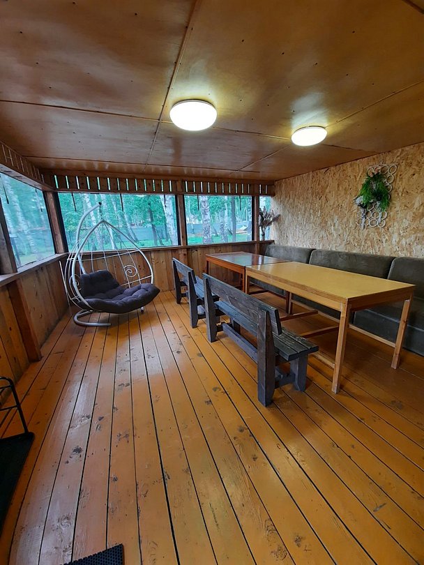 Инфраструктура: тапочки, зона отдыха, шапочки, душ, березовые веникиК услугам гостей просторная баня из сосновых бревен. Вмещает до 8 человек и топится дровами. Комната отдыха оснащена теплыми полами. Предусмотрены отдельная моечная с душевой, парная и санузел, что позволяет арендовать баню без проживания в домах.
