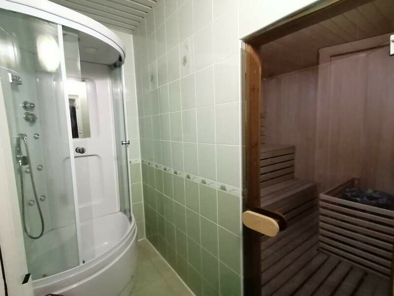 В номере есть современная душевая кабина, с гидромассажем, отличная сауна. Так же есть холодильник и телевизор.