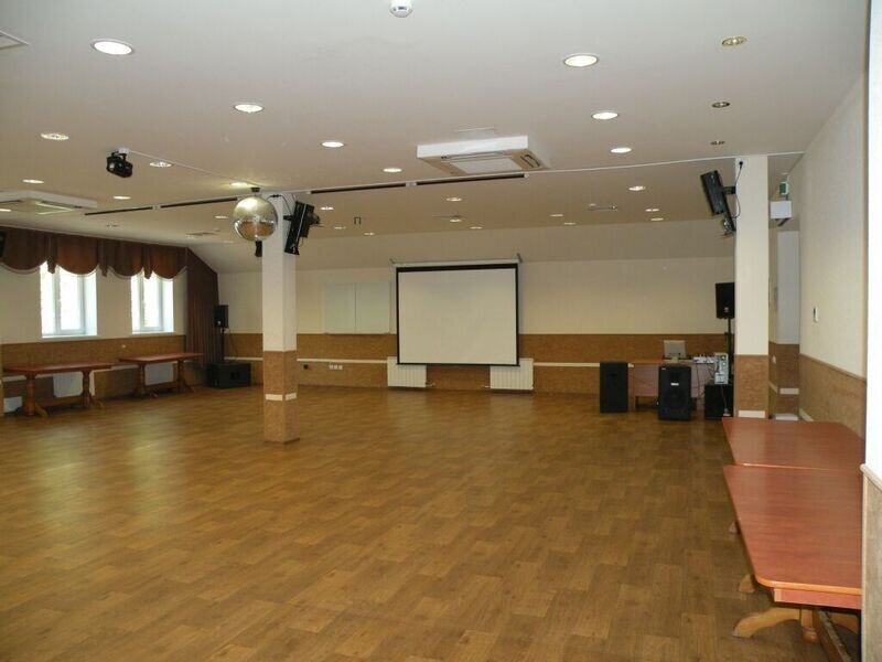 Зал на 100 мест, оборудованный магнитной доской, видеопроектором, большим экраном, трибуной, микрофонами, т.е. всем необходимым для проведения бизнес-тренингов, конференций, совещаний, представительских встреч, специализированных мероприятий.