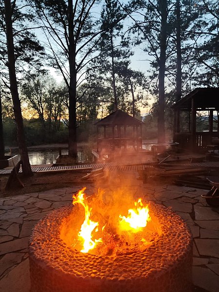 На территории к услугам отдыхающих великолепная баня, у которой есть спуск к реке, оборудованы беседки и мангалы, где можно пожарить ароматный шашлык. Для малышей обустроена игровая площадка. Есть возможность провести праздничное мероприятие в комфортабельном банкетном зале, расположенном на первом этаже двухэтажного дома.