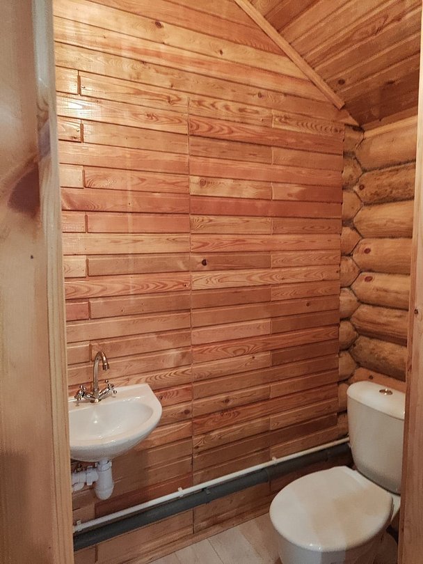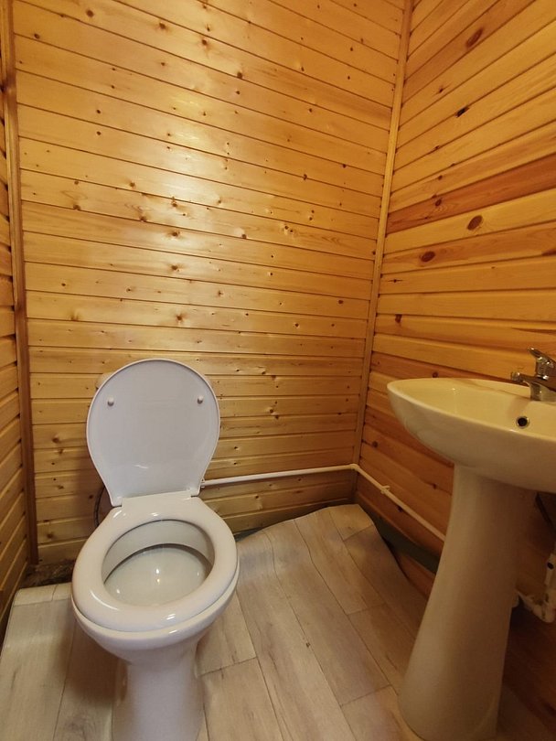 В большом доме расположено два комфортных санузла, оснащённых душевыми кабинами, унитазами, водонагревателями. Использование для проживающих бесплатно.