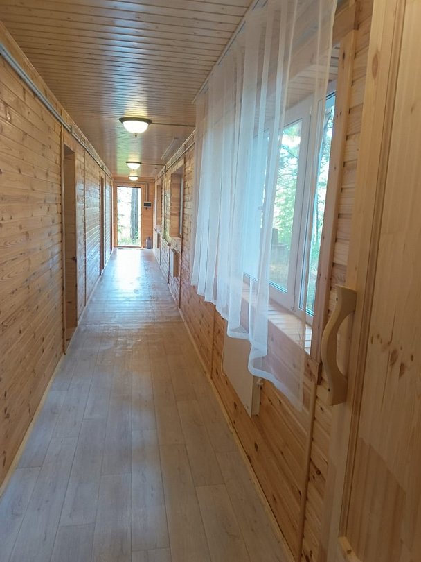 Одноэтажный дом для спокойного отдыха вдали от городской суеты. В доме 4 комнаты с односпальными кроватями. В доме есть санузел и раковина.
