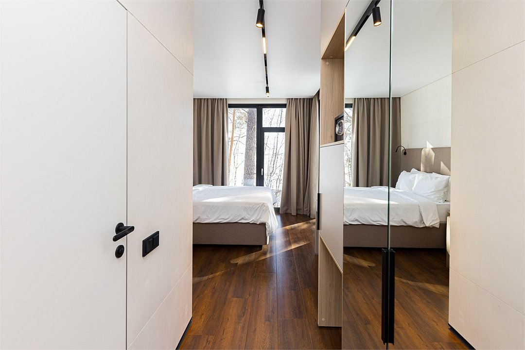 телевизор, Wi-Fi, кондиционер, система климат-контроля, фен, теплый пол, халаты, банные полотенца, тапочки, косметические средства, двуспальная кровать, стулья, шкаф для одежды, косметическое зеркало, питьевая вода, стаканы, столовые приборы, стол, туалетные средства, панорамные окна, раскладное кресло, мини-холодильник, гостиничная парфюмерия, вид на озеро, теплые полы, номер для некурящих, вид на лес, гигиенический душ, кресло-кровать, чайная станция, набор для приготовления чая и кофе, вешалки-плечики, шапочка для душа, затемняющая штора, окна от пола до потолка, зеркало в полный рост, дождевой и ручной душВ номере