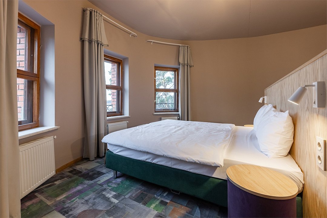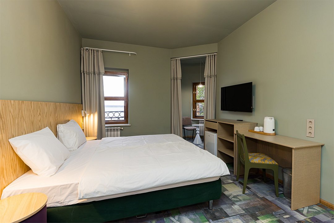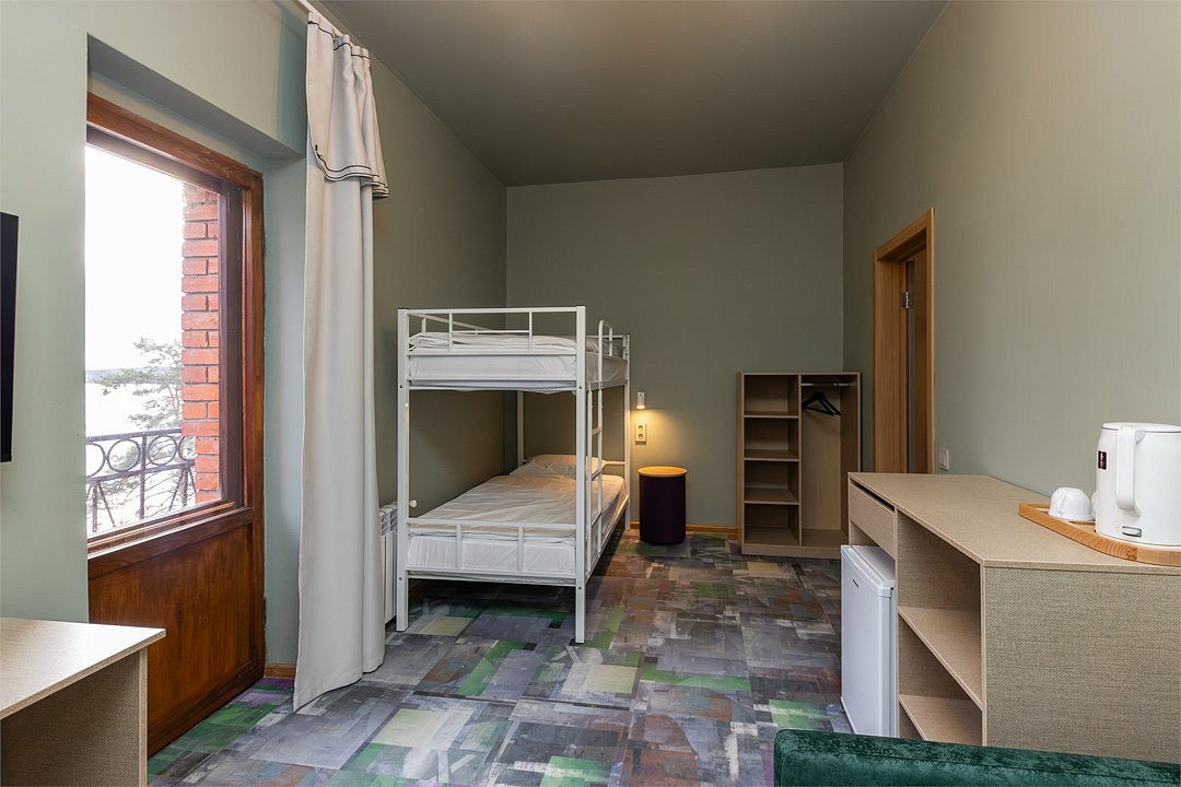 Совершенно новый дизайнерский однокомнатный номер в главном корпусе, прошедшем полную реконструкцию. Прекрасно подойдет для семьи с детьми. В номере: роскошная двуспальная кровать, двухъярусная кровать для детей, телевизор, интернет, холодильник и чайные принадлежности. Просторные санузлы с выделенной душевой зоной, полотенца, тапочки, профессиональная косметика - все для вашего лучшего отдыха!Услуги и удобства