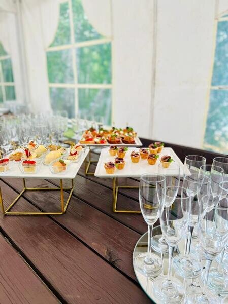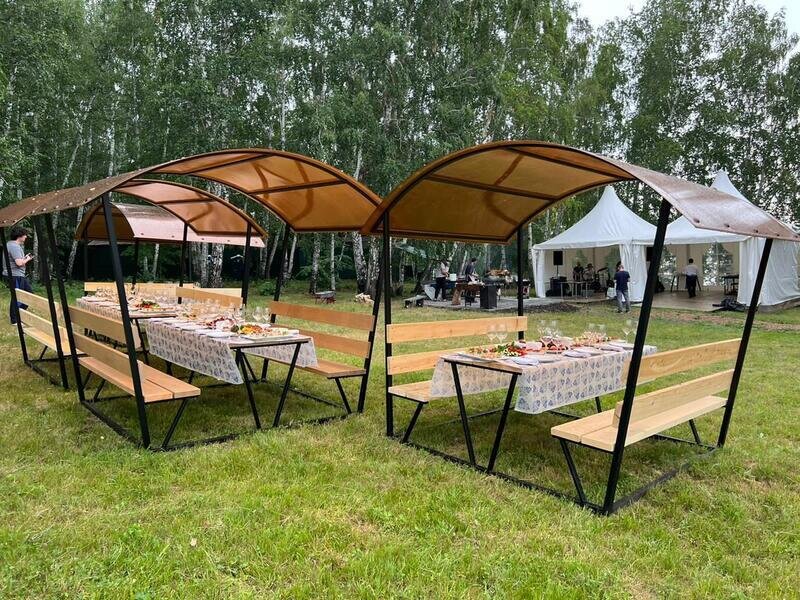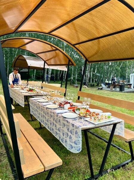База отлично подходит для проведения больших мероприятий (до 40 человек). Есть шатер, беседки, скамейки, кресла, стулья. Сотрудничество с ведущими, фотографами, кейтерингами, а также организация свадеб, фуршетов и корпоративных праздников.